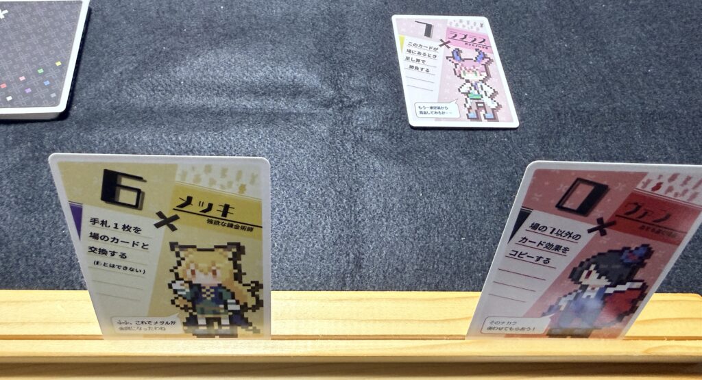 手札2枚の数字を掛け合わせ、誰よりも大きな値を目指す。ルールは極めてシンプルですが、カードの効果によって手札が入れ替わったり、場の状況が刻一刻と変わったりと、最後まで気が抜けません。